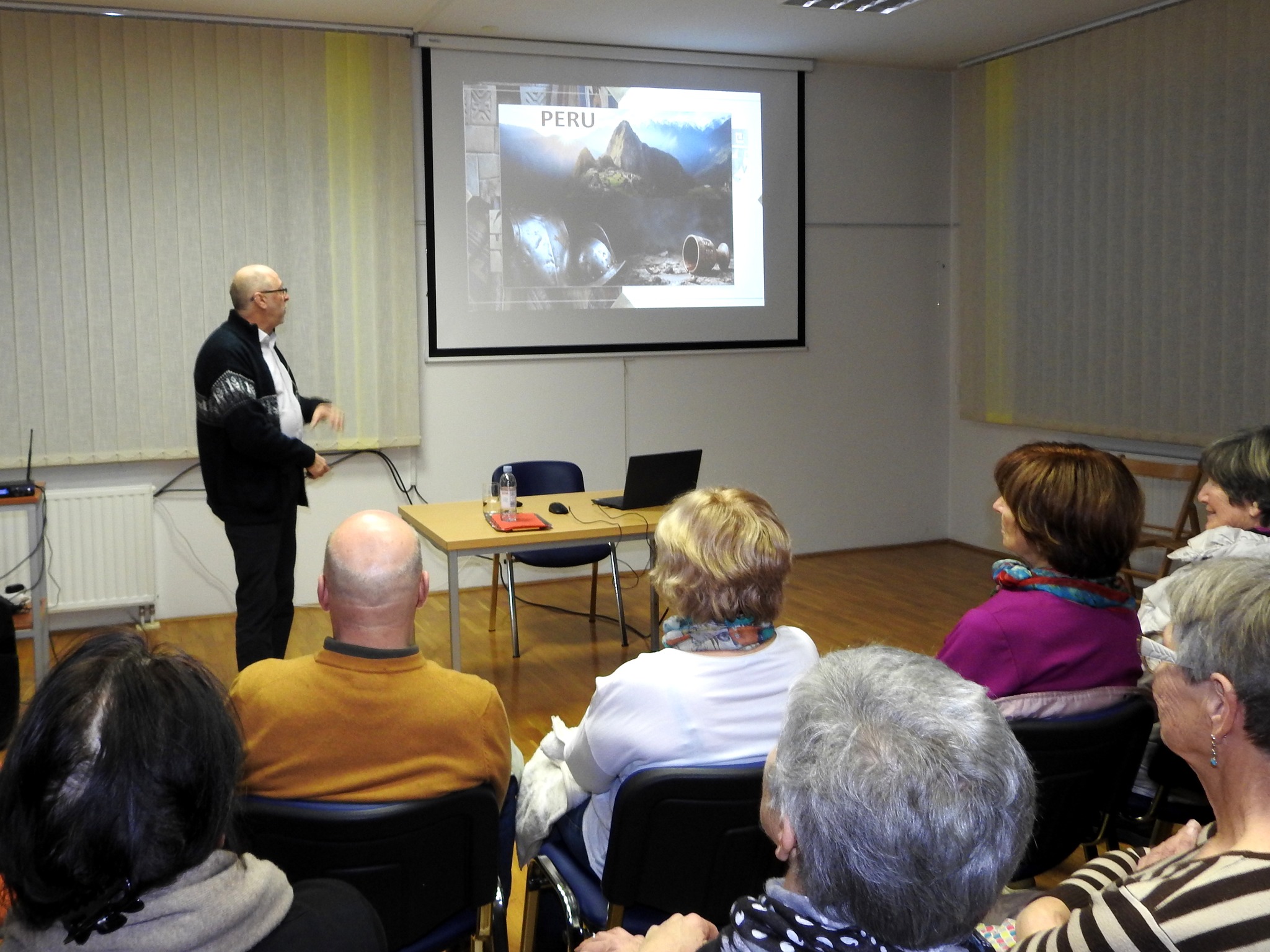 V sredo, 4. februarja 2026, je knjižnica v Starem trgu gostila potopisno predavanje dr. Dušana Barage z naslovom Peru – dežela Inkov. Knjižnica se je za dobro uro spremenila v izhodišče za slikovito potovanje po Južni Ameriki. Namesto kavča, televizije ali telefona so se obiskovalci prepustili avanturi – sicer brez letala, a z veliko domišljije. Dr. Dušan Baraga je s pripovedjo in fotografijami pokazal, da za velika doživetja kovček ni nujen. Kjer sta radovednost in odprta ušesa, se vsak trenutek zlahka prelevi v doživetje. Obiskovalci so se tako podali v visoke gore, spoznavali vsakdanje življenje Perujcev skozi barvite tržnice, ročno tkane noše in kulinariko, kjer ima krompir prav posebno mesto. Predavatelj jih je popeljal od puščavske obale prek zasneženih vrhov Andov do bujne amazonske džungle na perujskem ozemlju. Pot jih je vodila v Cusco, nekdanje središče inkovskega imperija, in naprej do turistično obleganega Machu Picchuja, skrivnostnega mesta nad oblaki, ki še vedno skriva tisoč zgodb. Predavanje so dopolnili prizori jezera Titikaka, kanjona Colca z veličastnimi andskimi kondorji ter skrivnostne črte Nazca, ki še danes burijo domišljijo. Posebno zanimanje so vzbudili plavajoči otočki na jezeru Titikaka, stkani iz trstičja totora. Na teh umetnih otokih ljudje še danes kuhajo, spijo in živijo v preprostih kočah iz trstja. Jezero, ki leži na meji med Perujem in Bolivijo, velja za najvišje plovno jezero na svetu. Za konec je predavatelj navzoče popeljal še do Tihega oceana in razkril, da se je kljub mrzli vodi tudi sam podal v valove.