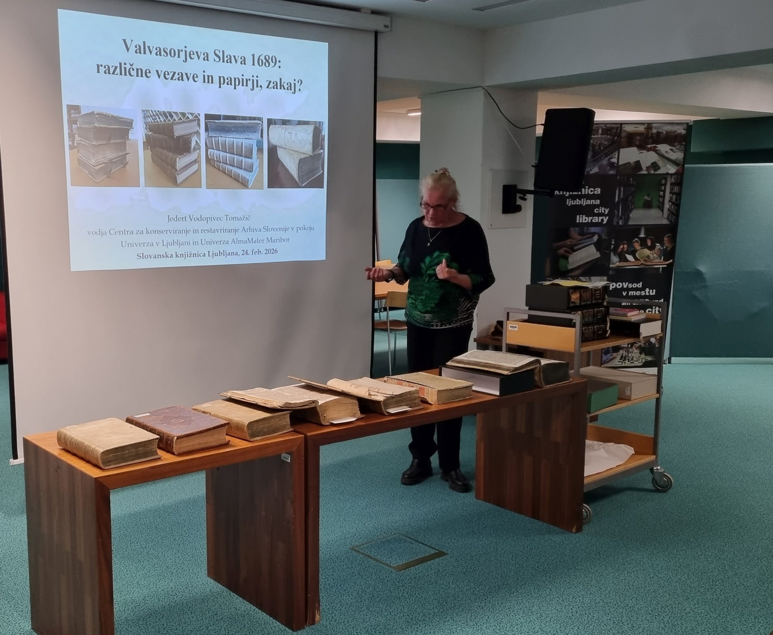 V Slovanski knjižnici v Ljubljani je dr. Jedert Vodopivec Tomažič, pred upokojitvijo je bila vodja Centra za konserviranje in restavriranje Arhiva Republike Slovenije, predstavila raziskavo o primerjavi med vezavami in papirji Valvasorjeve Slave vojvodine Kranjske iz leta 1689. Pregledanih je bilo 52 izvodov, ki se hranijo v Sloveniji, med njimi tudi Slava iz Knjižnice Jožeta Udoviča Cerknica, štirje izvodi iz Hrvaške, devet iz Italije (Gorica, Trst), po dva pa iz Madžarske in Nemčije (Nürnberg).